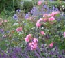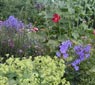 Trittplatten aus großformatigen Natursteinplatten führen den Gartenbesucher durch ein Meer duftender und blühender Stauden, Rosen und Gehölze. Schmetterlinge flattern. Ein Quellstein sprudelt Sommerfrische...